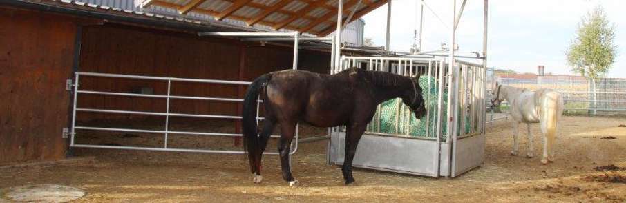Eine großzügig überdachte Heuraufe ist für Pferdehalter auf jeden Fall zu empfehlen, damit das Heu und die Pferde vor der Witterung geschützt sind. © LK NÖ/Stefanie Wagner